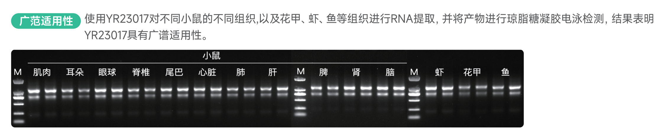 YALEPIC® Animal Cell & Tissue Total RNA Fast Isolation Kit基于异硫氰酸胍裂解与硅基质膜纯化相结合的技术,适用于从动物组织、细胞中快速提取总RNA。提取过程中无需使用氯仿,采用硅基质膜吸附RNA,搭配优化后的缓冲液进行纯化,Fast gDNA Filter Columns能有效地去除杂质和gDNA,Pure Columns RT能高效地结合RNA。提取的总RNA纯度高,如敏感实验需完全去除残留DNA,可用RNase-free的DNase I进行消化去除。提取的RNA可用于RT-PCR、荧光定量PCR、芯片分析、Northern Blot、Dot Blot、Ploy(A)筛选、体外翻译、RNase保护分析和分子克隆等多种下游实验。